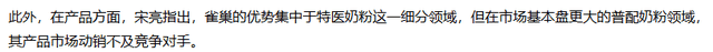 正在产物布局方面,阐发,雀巢的劣势集中于特医奶粉这一细分范畴,但正在市场根基盘更大的普配奶粉范畴,其产物市场动销不及合作敌手。