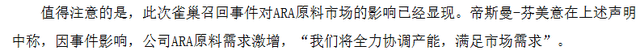 供应链层面也遭到此次事务的深刻影响。跟着帝斯曼发布通知布告,市场将核心转向国内最大ARA供应商嘉必优。